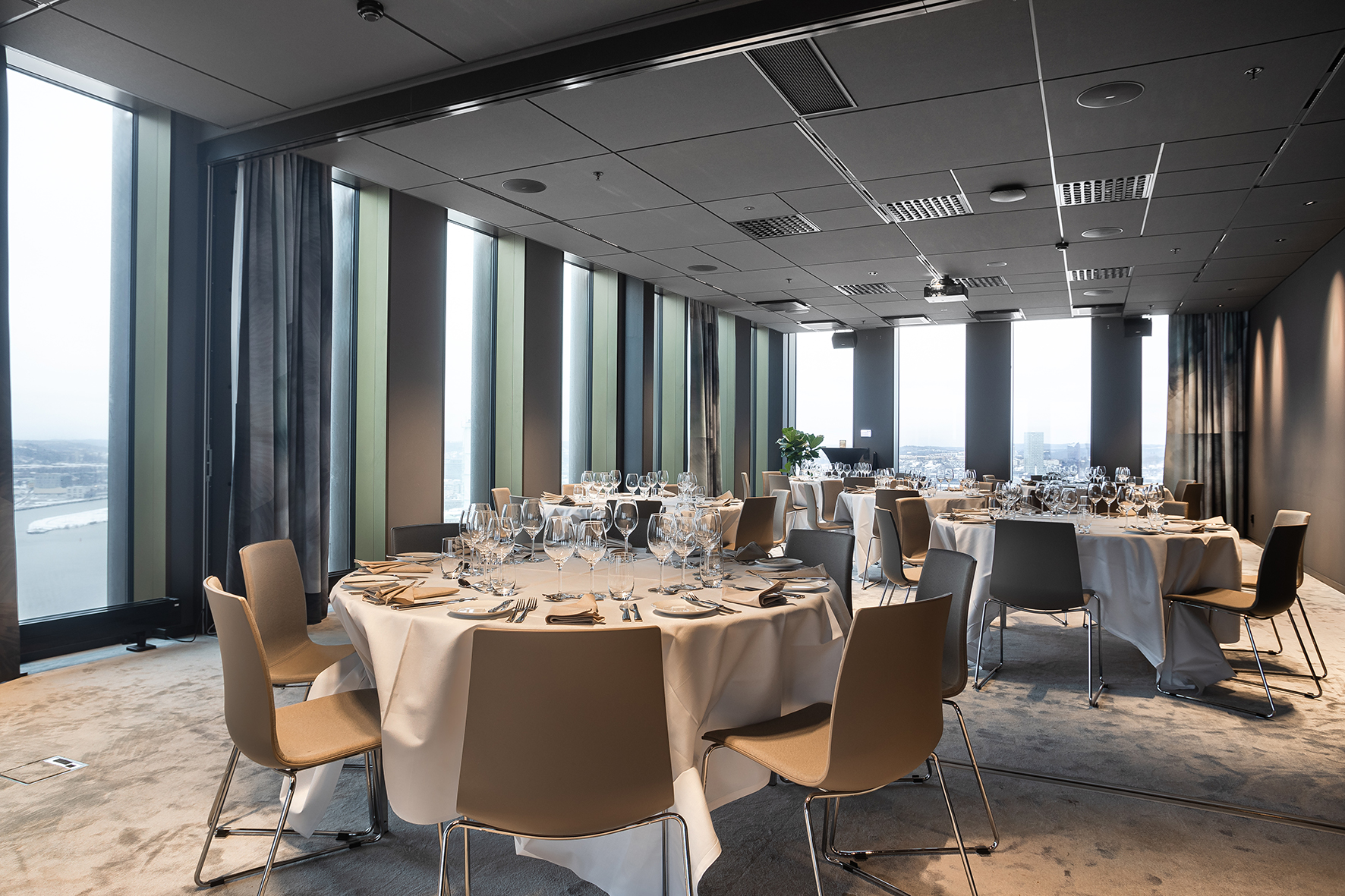 Hotellet erbjuder moderna och flexibla mötesmiljöer på flera våningsplan. På våning 32 finns en dedikerad mötes- och eventvåning med generösa ytor och panoramavyer, som skapar en effektfull inramning för presentationer, mingel och galamiddagar.